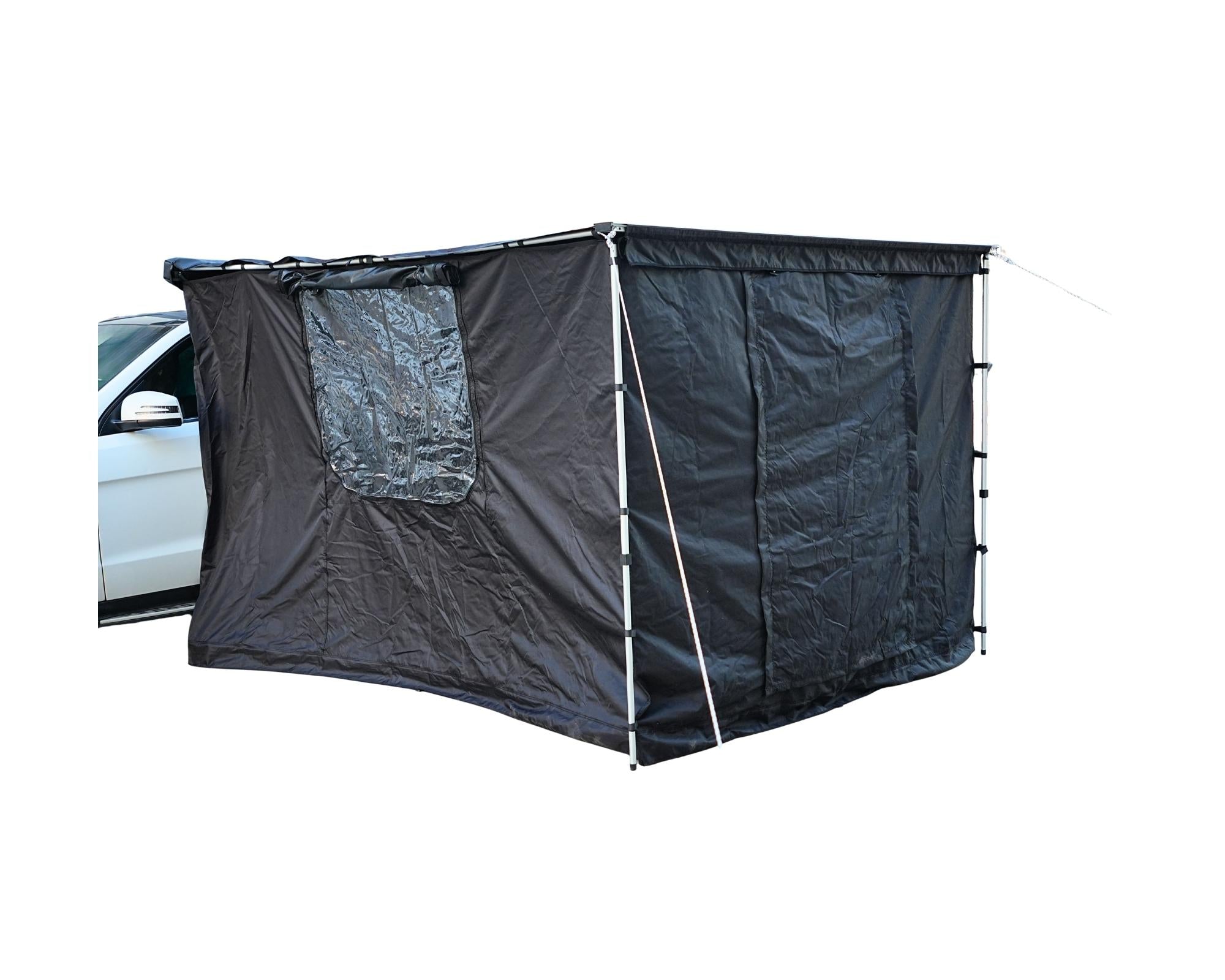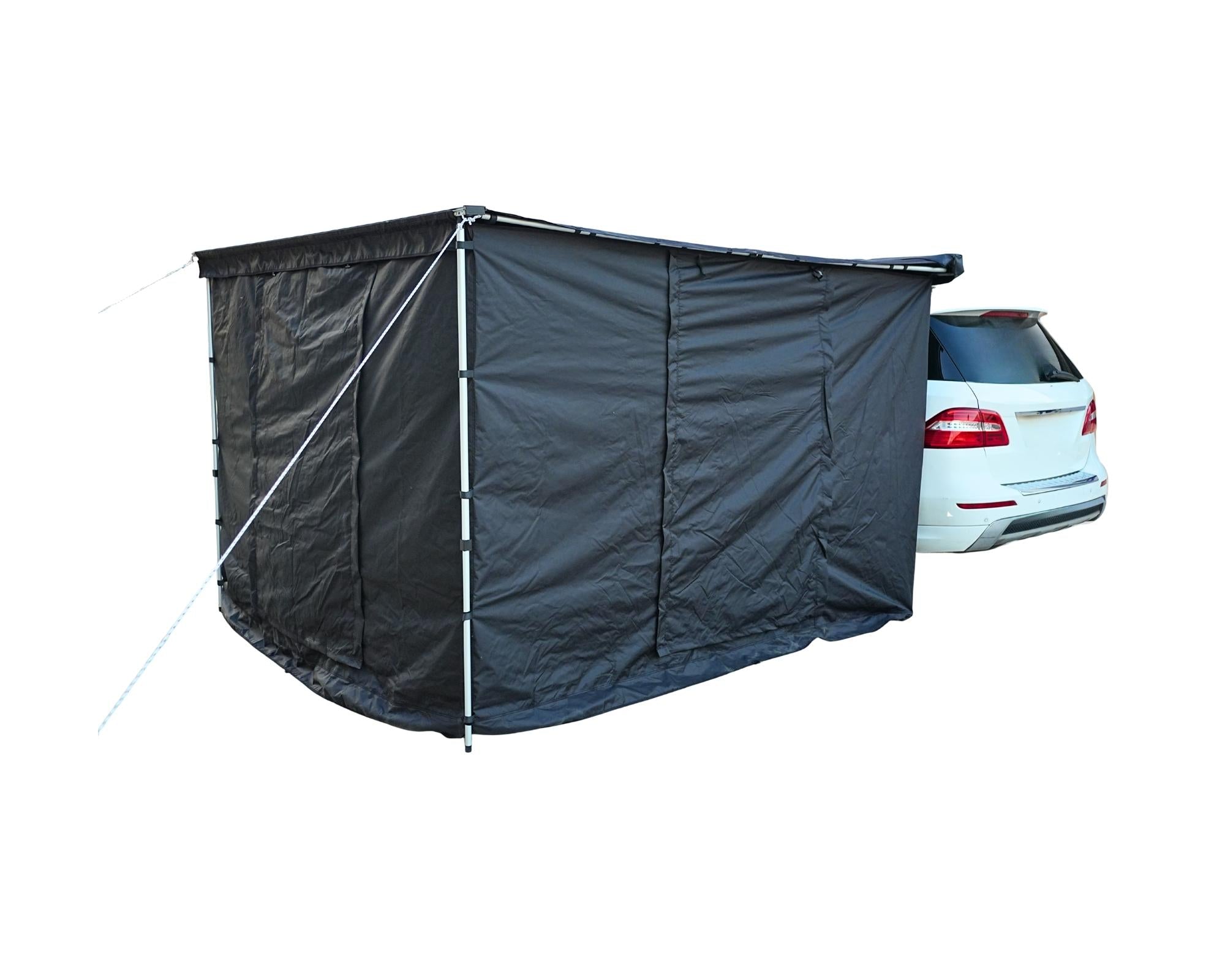 Ideal für Regenwetter, starke Sonne oder einfach für mehr Privatsphäre auf dem Campingplatz. Das Vorzelt wird direkt an der komaru 250 befestigt und passt exakt zu deren Maße.